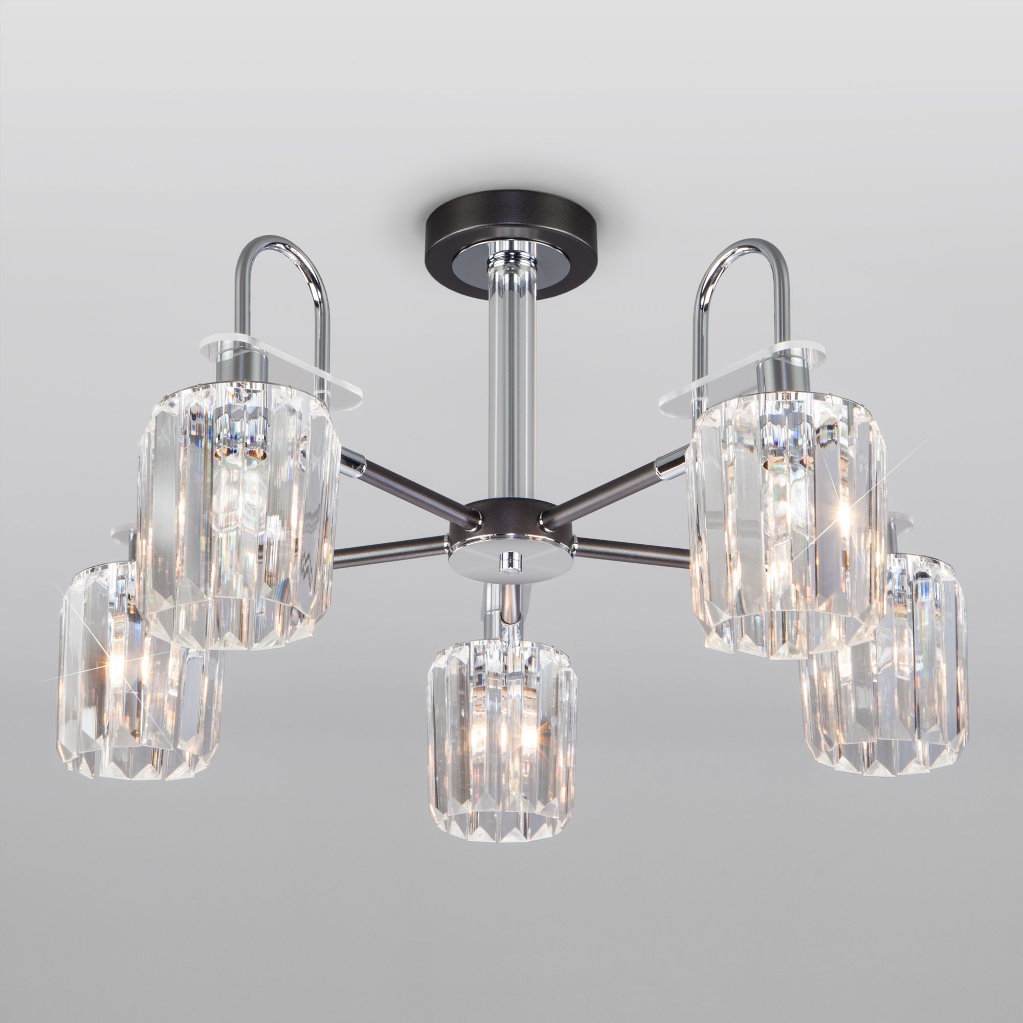 Описание: Умная потолочная люстра с хрусталем в стиле лофт 70090/5 графит a045141 Eurosvet