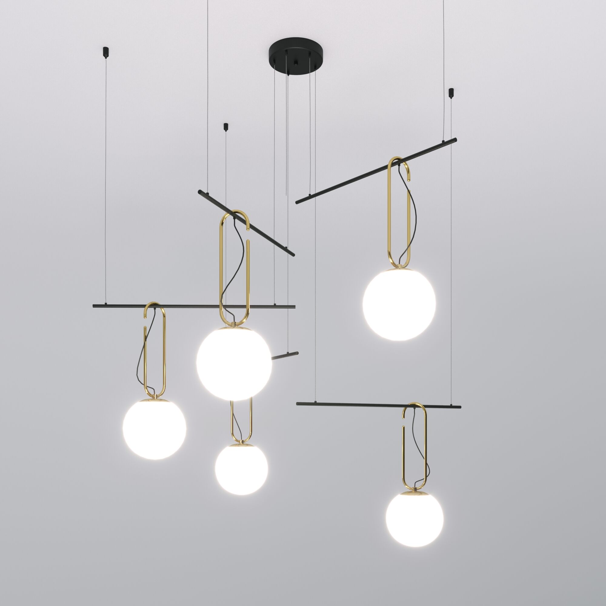 Светильник со стеклянными плафонами оборудован системой регулировки высоты подвеса, позволяющей размещать изделие на разных уровнях, уменьшая или увеличивая угол рассеивания светового потока. Подвесной светильник просто устанавливается на натяжных потолках при помощи монтажной планки.