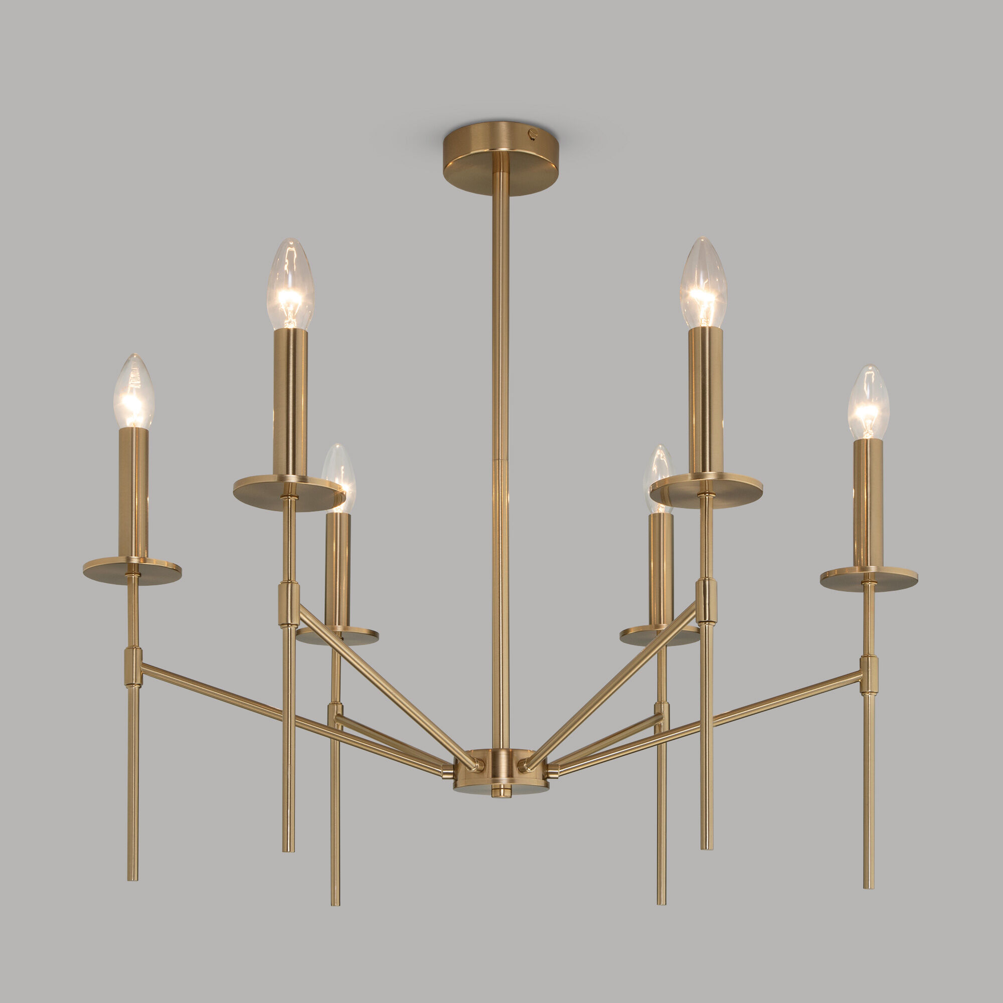 Люстра Anders в цвете латунь- это острое сочетание трендовой геометрии и концепции традиционной люстры-канделябра. Шесть открытых источников света без привычных для нас стеклянных плафонов подчеркивают четкость линий модели и оригинальность задумки. В светильнике используются сменные лампы с цоколем E14. Благодаря гармоничному сочетанию классических и современных дизайн-приемов потолочный светильник Anders создаст запоминающийся визуальный образ в любом интерьере гостиной, спальни или кухни.