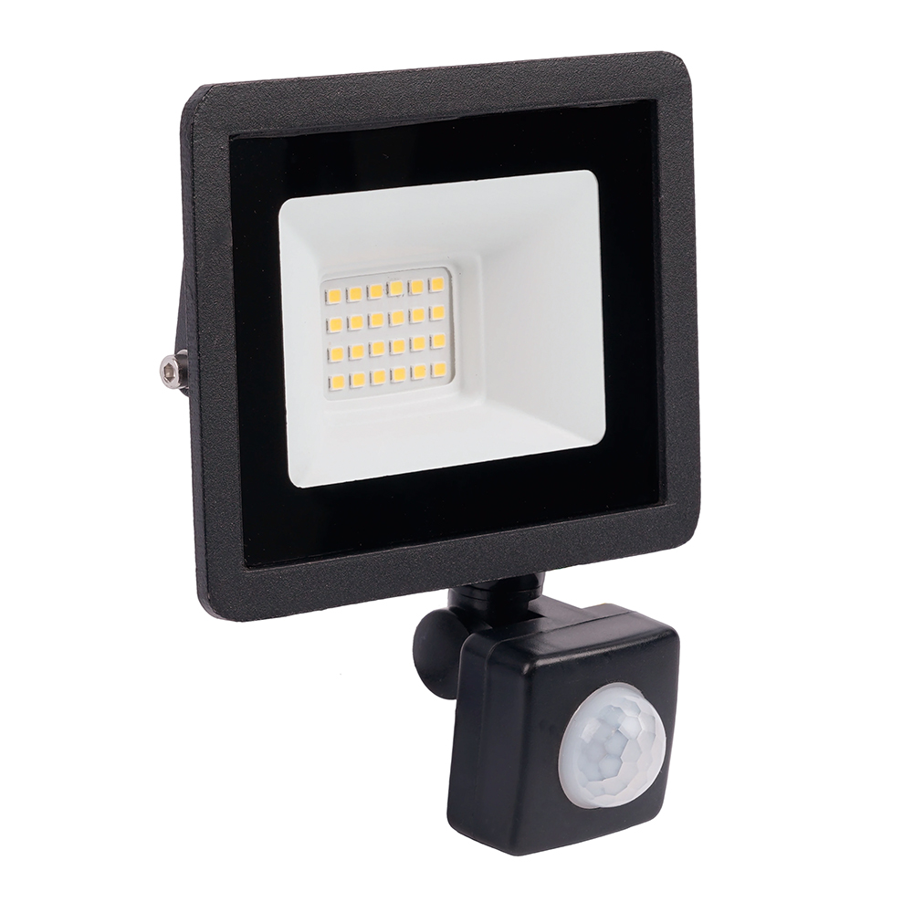 Прожектор светодиодный многоматричный с монтажным креплением на кронштейн, с инфракрасным датчиком движения (ДО) SAFFIT SFL80-30, 30W, 6400К (дневной), 230V/50Гц, 2700Lm, IP65, угол рассеивания 120°, 24*SMD2835, раб.t -40°C - +45°C, цвет черный, корпус алюминий литой под давлением + стекло, 115*150*28 мм
