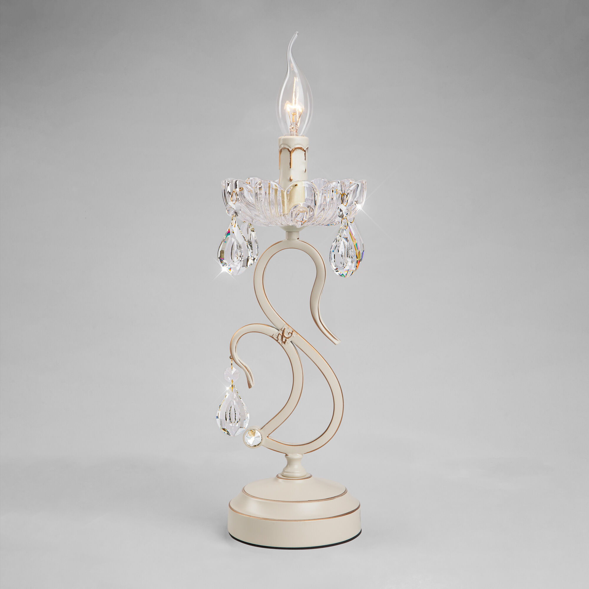 Прочный металлический корпус светильника устойчив к механическим воздействиям, а защитное покрытие обеспечивает надежную электроизоляцию и презентабельный внешний вид. Лампа украшена декоративным хрусталем, выполненным из особого стекла с эффектной огранкой.