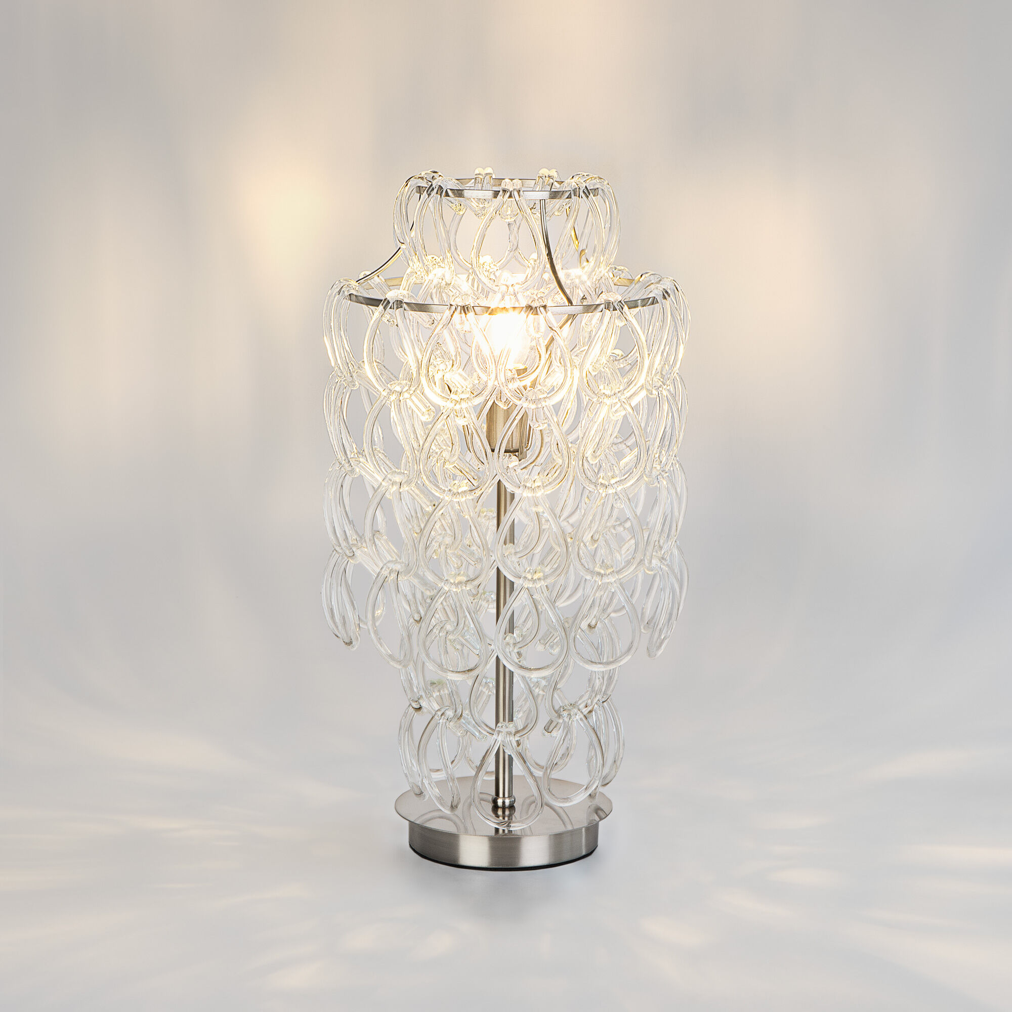 Коллекция Cappio – выбор для ценителей элегантности и уникальности. Благородный классический силуэт основания, где место привычного декора заняли круглые каплевидные мотивы, становится образцом утонченного дизайна. Многоярусный водопад с прозрачными каплями наполняет пространство атмосферой торжественности и освежает интерьер, придавая ему эффект визуальной легкости.