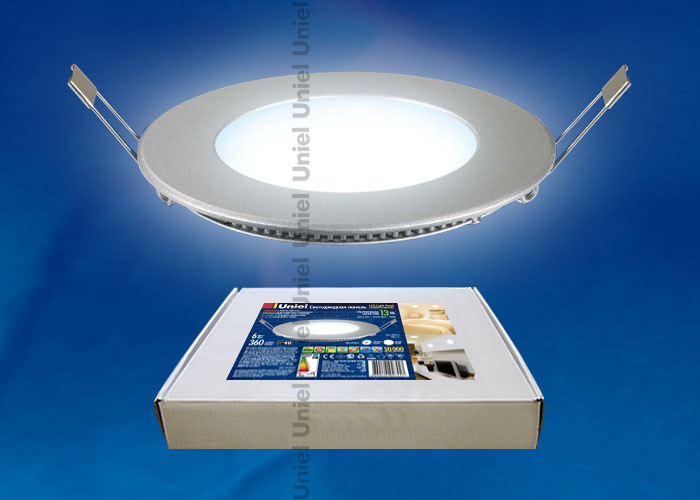 Светильник ультратонкий светодиодный потолочный встраиваемый Uniel ULP-R120-06/DW SILVER  имеет мощность 6 вт и диаметр ¢120*16mm. Светильник поставляется в комплекте с адаптером.