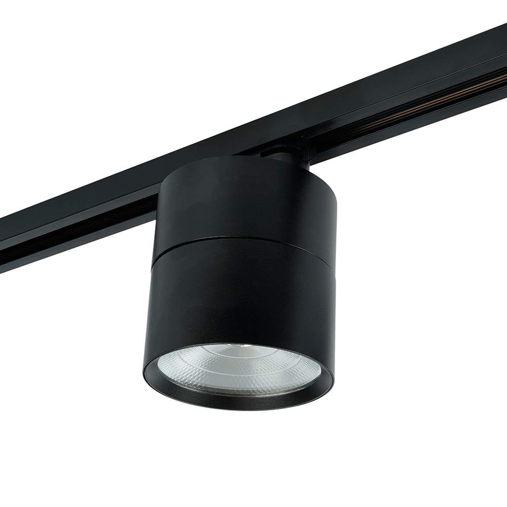 Светильник трековый на шинопровод, однофазный (ДПО) FERON AL107, 25W, 4000К (белый), 170-265V, 2250Lm, цвет черный, корпус алюминий, рассеиватель стекло, вращение →350°/↓90°, 103*103*145 мм