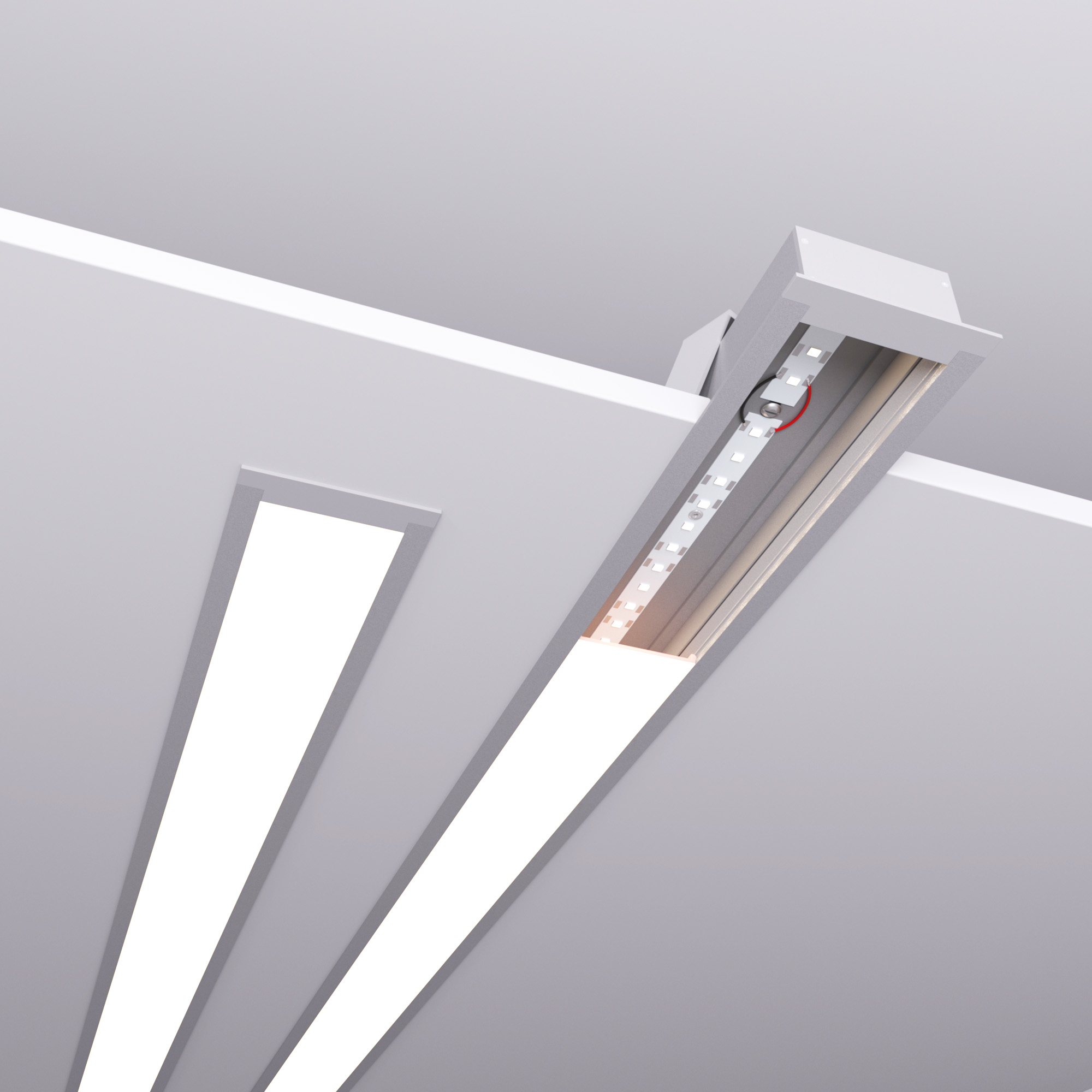 Встраиваемый линейный светильник RVE-PLS, идеальное решение для создания оригинального интерьера в потолок из гипсокартона. Цена за светильник без покраски, цвет алюминий. Дополнительно возможно заказать: любой цвет корпуса, диммирование, свечение RGB, аварийный блок питания.