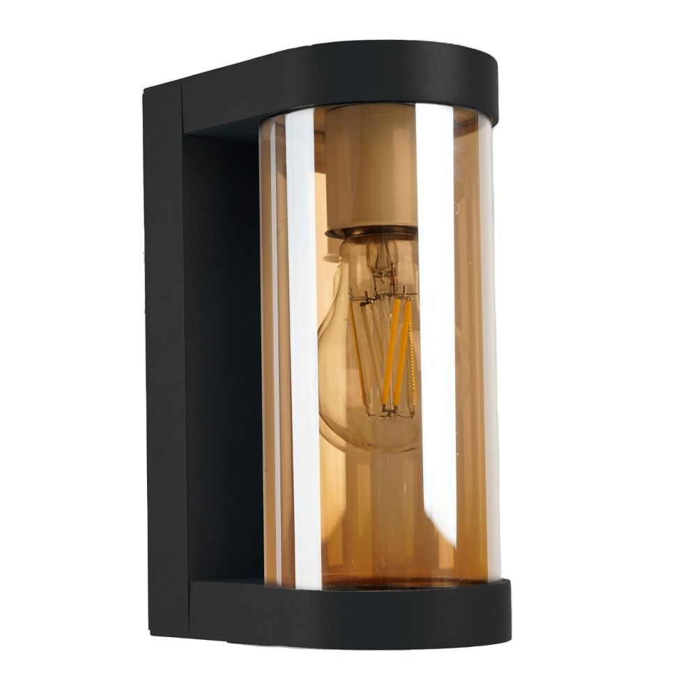 Светильник садово-парковый, серии «Бостон», (НБУ) FERON DH1901 E27, 230V, IP44, цвет черный/янтарный, цилиндр, на стену , 125*92*206мм