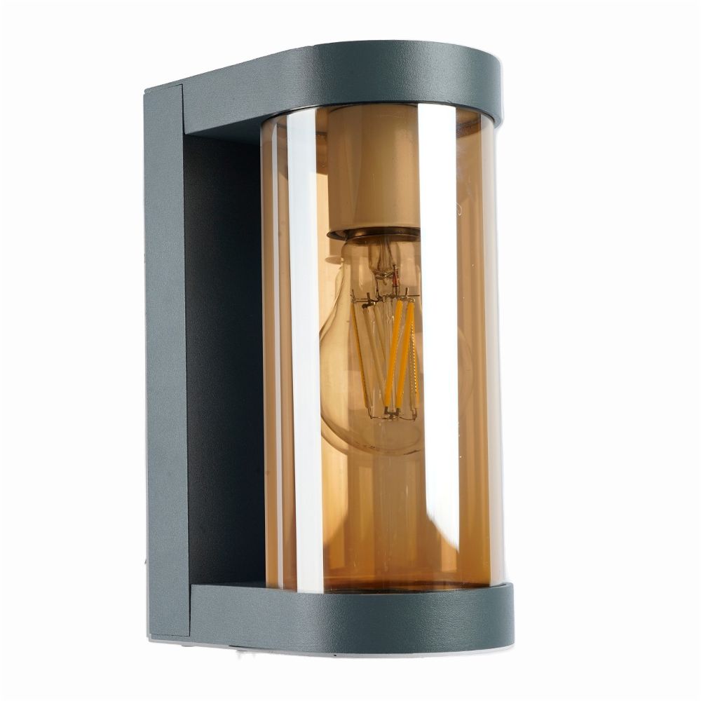 Светильник садово-парковый, серии «Бостон», (НБУ) FERON DH1901 E27, 230V, IP44, цвет серый/янтарный, цилиндр, на стену , 125*92*206мм