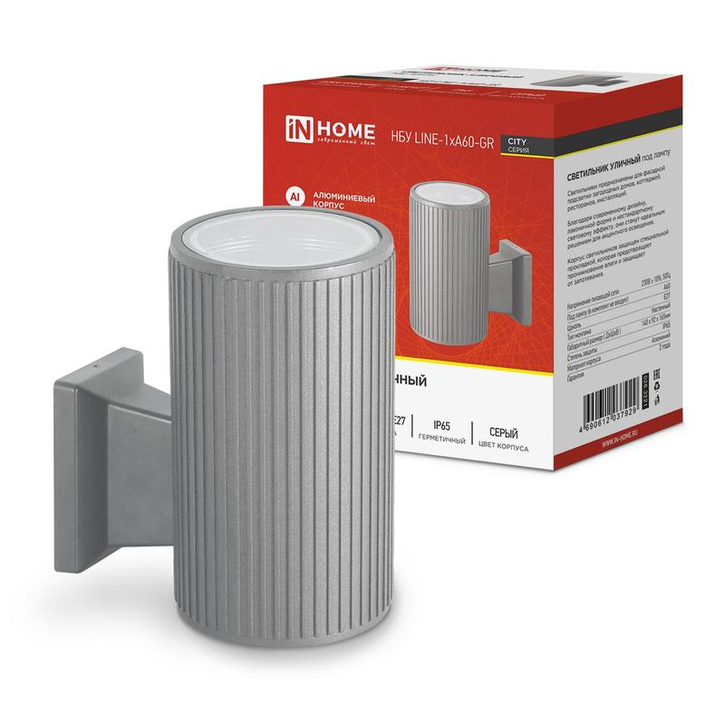 Светильник НБУ LINE-1хA60-GR CITY E27 IP65 230В уличный односторон. под лампу 1хA60 алюм. сер. IN HOME 4690612037929 - условия доставки