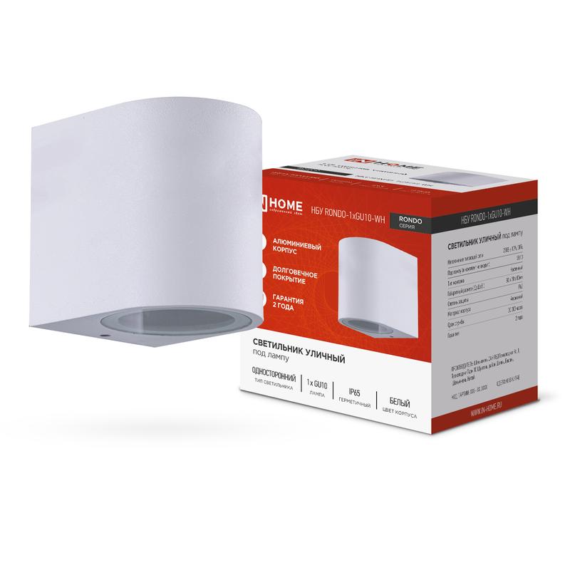 Светильник НБУ RONDO-1хGU10-WH IP65 уличный настен. односторон. под лампу 1хGU10 алюм. бел. IN HOME 4690612044699 - условия доставки