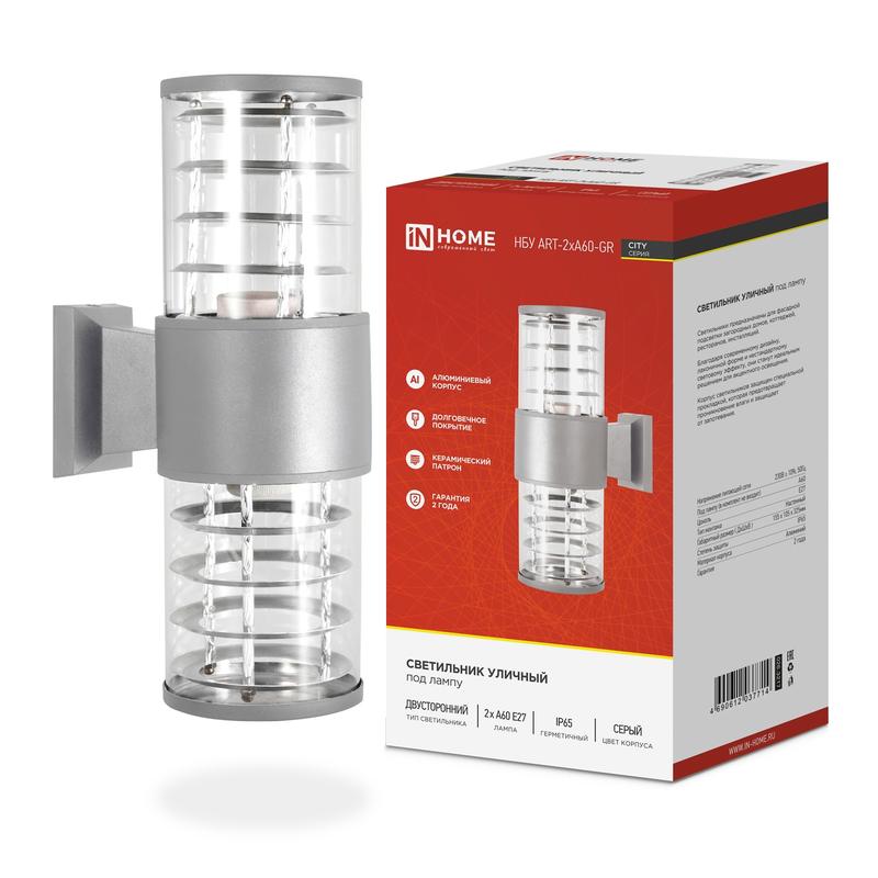 Светильник уличный двусторонний НБУ ART-2хA60-GR алюм. под лампу 2хA60 E27 230В CITY IP65 сер. IN HOME 4690612037714 - способы оплаты