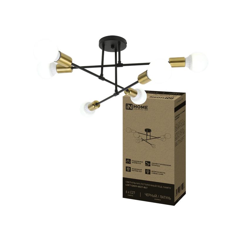 Светильник LOFT EASY-6E27-BLT 6хE27 потолочн. под лампу; латунь черн. IN HOME 4690612062655 - условия доставки