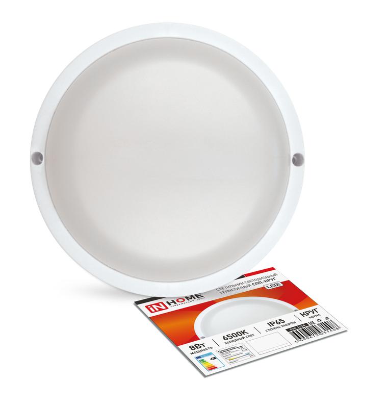 Описание: Светильник светодиодный СПП-КРУГ 8Вт 6500К IP65 640лм 230В герметичный IN HOME 4690612031408