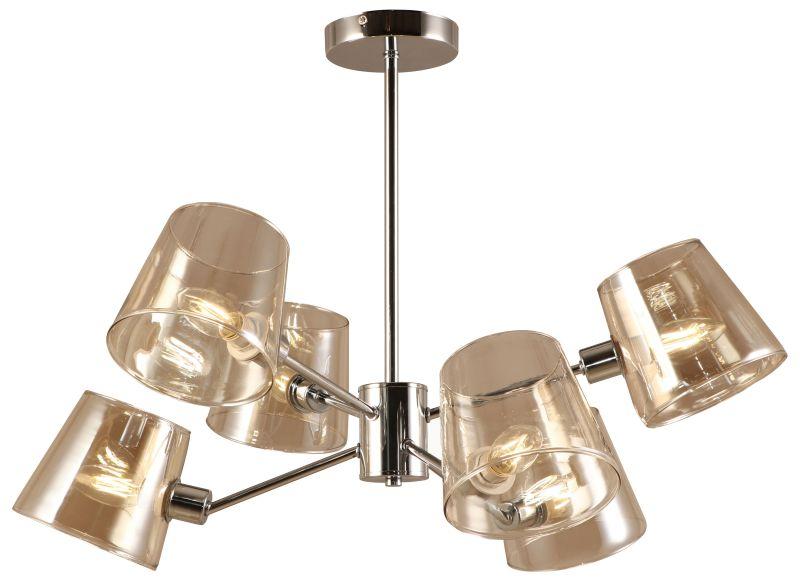 Корпус люстры Rivoli Eliza выполнен из металла со стойким гальваническим окрашиванием в актуальный цвет хром. Люстры на металлической штанге – трендовое решение дизайна интерьеров. Такие эффектные люстры – свежий аналог люстрам подвесным. Люстры на штанге Eliza Rivoli подойдут для высоких потолков. Освещаемая площадь 6-рожковой люстры на потолок – до 18 м2.