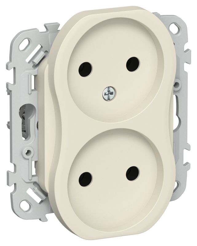 Розетка 2-м СП FLITE РС02-1-ФлСл 10А без заземл. без защ. шторок безвинтовое крепление механизм сливочный IEK FI-R20-10-1-K86 - условия доставки