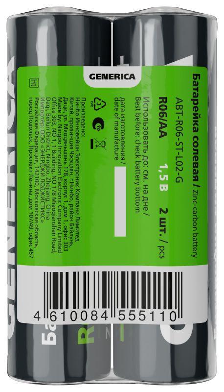 Описание: Элемент питания солевой AA/R6 пленка (уп.2шт) GENERICA ABT-R06-ST-L02-G