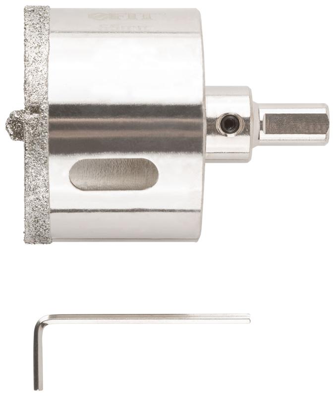 Кольцевая алмазная коронка по керамограниту FIT IT предназначена для вырезания круглых отверстий в керамограните, камне, стекле, кафельной плитке. Поставляются в комплекте с центрирующим сверлом и шестигранным ключом. Влажное сверление. Высокая концентрация алмазного зерна обеспечивает износостойкость и длительный ресурс коронок. Чистый рез без сколов достигается за счет мелкого размера алмазных частиц. Центрирующее сверло предотвращает смещение коронки во время работы и способствует точному позиционированию. Трехгранный хвостовик передает больший крутящий момент за счет стойкости к проворачиванию.