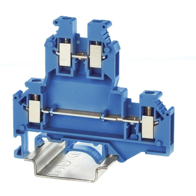 Описание: Клемма двухуровневая винтовой зажим 4 точки подключения 4кв.мм син. DKC KRUKB-5-BU