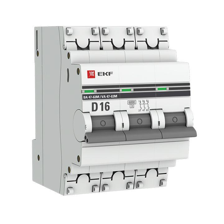 Выключатель автоматический 3п D 16А 6кА ВА 47-63M с одним магн. расцеп. EKF mcb4763m-6-3-16D-pro - условия доставки