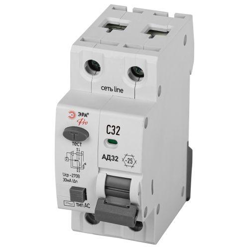Выключатель автоматический дифференциального тока 1P+N C 32А 30мА тип AC защита 230В АВДТ 4.5кА PRO D32E2C32AC30P АД32 электронное Эра Б0057355 - условия доставки