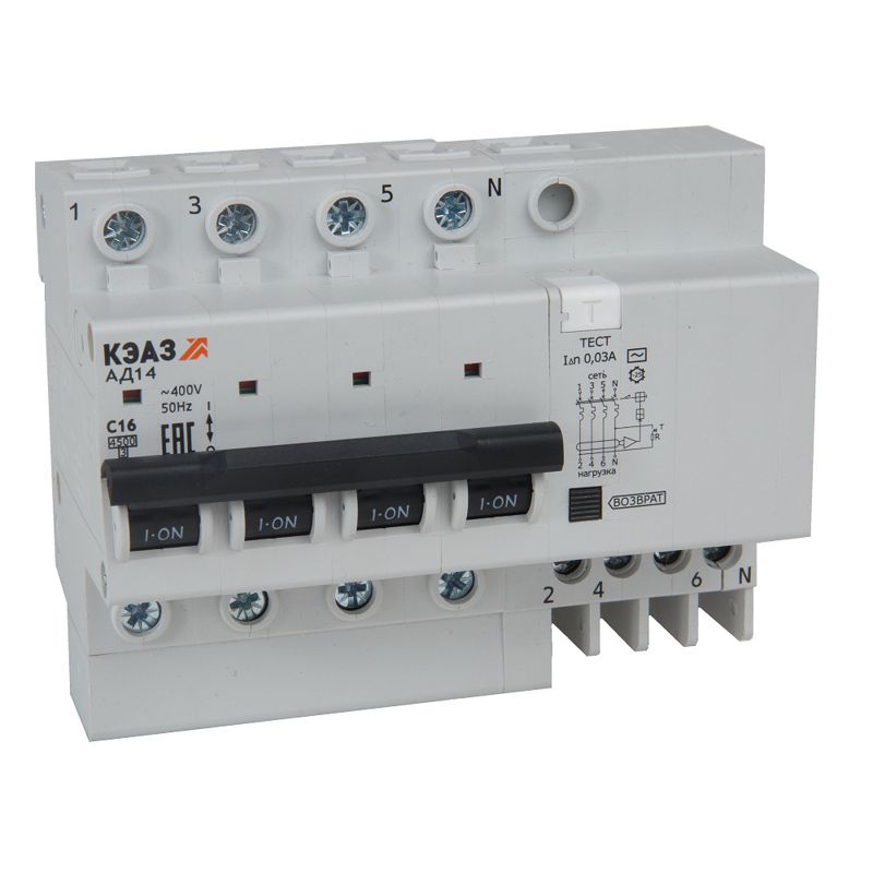 Выключатель автоматический дифференциального тока 4п C 63А 100мА тип AC 4.5кА АД14-43C63-AC УХЛ4 КЭАЗ 318392 - условия доставки