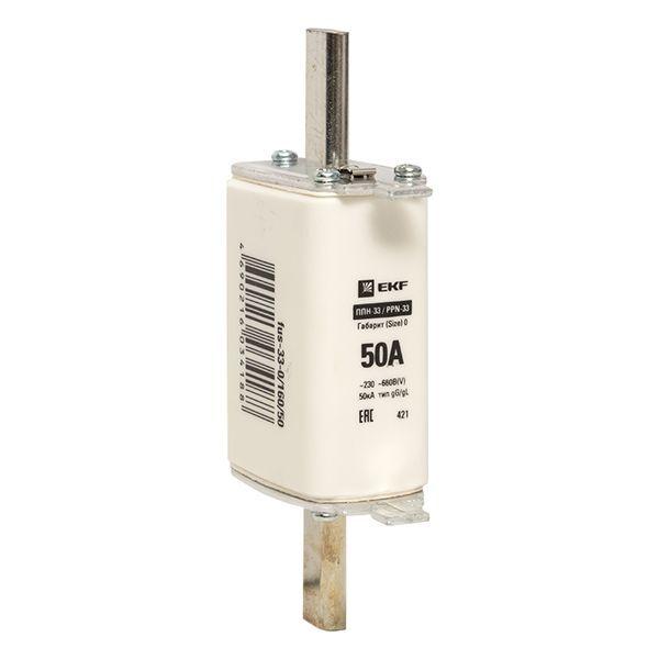Плавкая вставка ППН-33 160/ 50А габарит 0 EKF. Предохранители плавкие ППН EKF, укомплектованные плавкими вставками типа gG/gL, предназначаются для защиты кабельных линий и промышленных электроустановок от токов перегрузки и короткого замыкания. Предохранители применяются в электрических сетях переменного тока частотой 50 Гц с напряжением до 660В. Применяются для крепления в распределительных и вводно-распределительных устройствах. Предохранители плавкие ППН могут устанавливаться в основание с держателем, а также в специально предназначенные рубильники. В комплект поставки предохранителей плавких ППН основание с держателем не входит и приобретается отдельно.