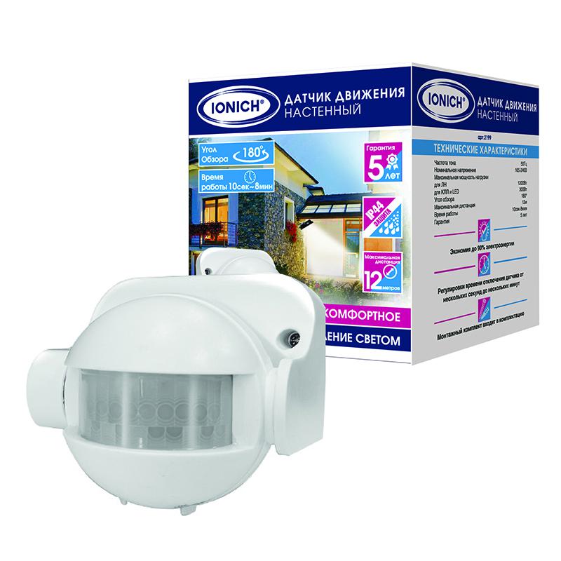 Датчик движения настенный 12м 1200Вт 8мин бел. IONICH 2199 - условия доставки