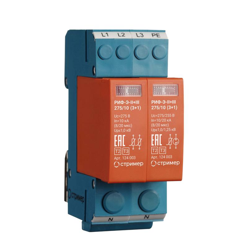 Описание: Устройство защиты от импульсных перенапряжений РИФ-Э-II+III 275/10 (3+1) Стример 124003