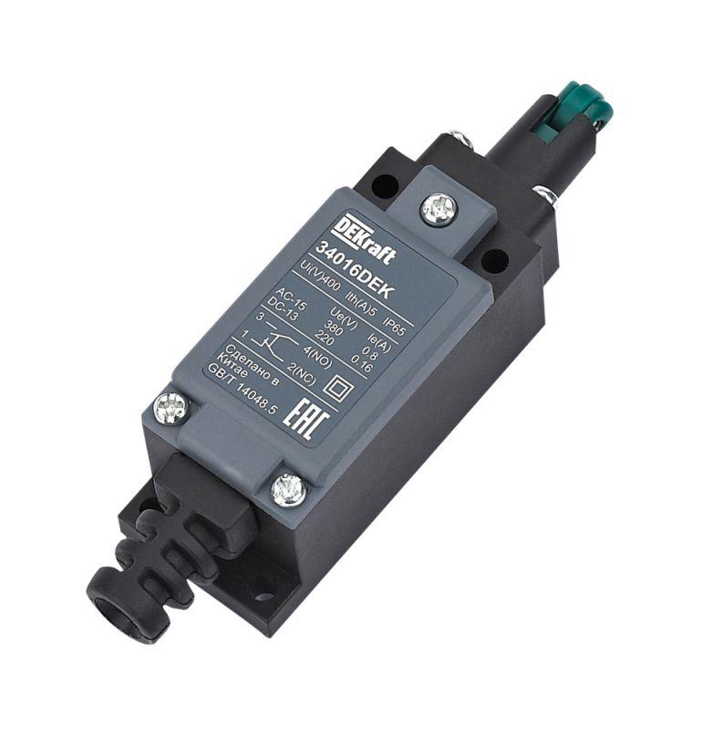 Описание: Выключатель концевой 1НО1НЗ плунжер роликового типа с вертик. включ. пласт. DEKraft 34016DEK