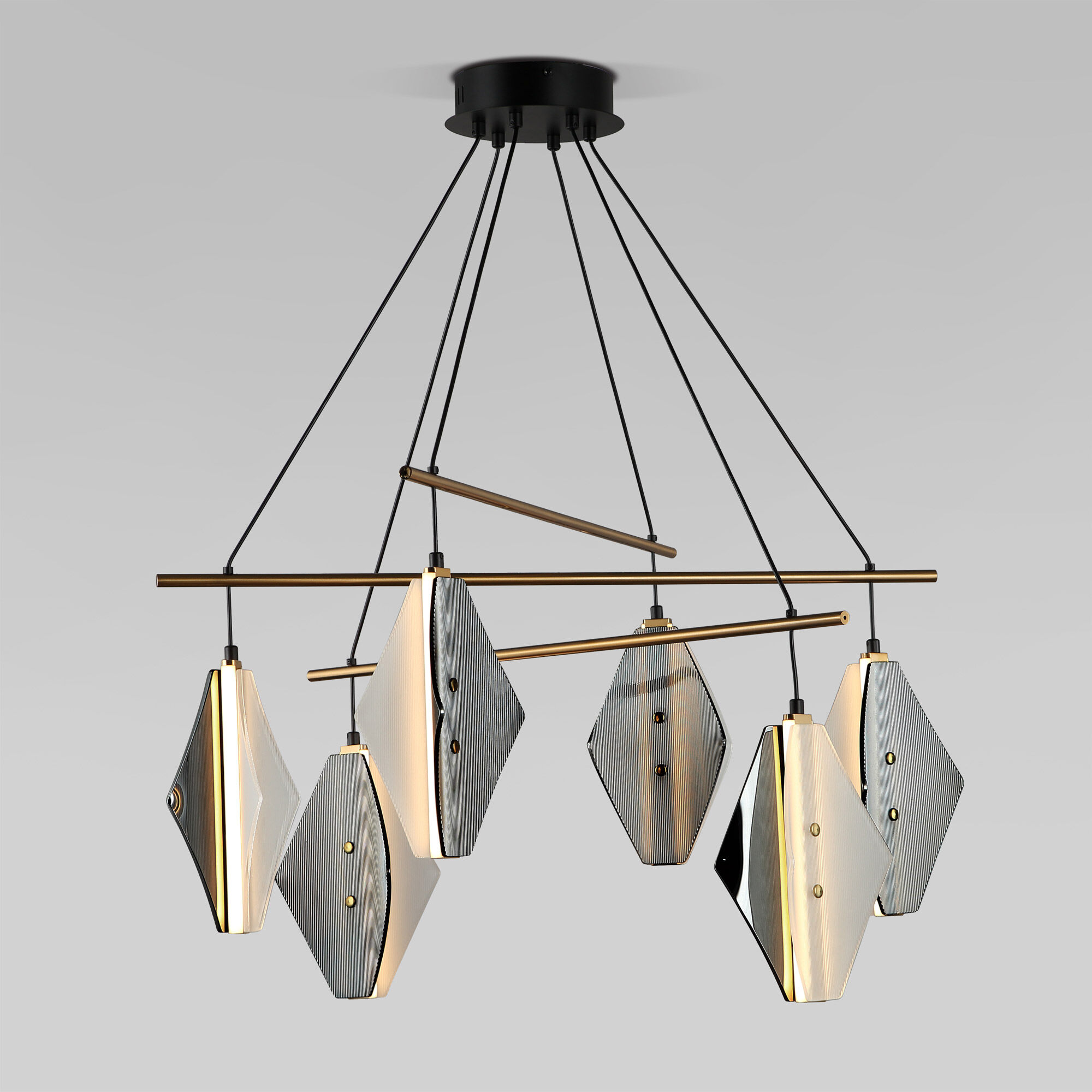 Необычный дизайн Glare, сочетающий строгие линии и мягкое сияние, приковывает взгляд и создает атмосферу уюта и современности. Геометрические плафоны ромбовидной формы с рельефной текстурой преломляют свет, создавая игру теней и бликов.