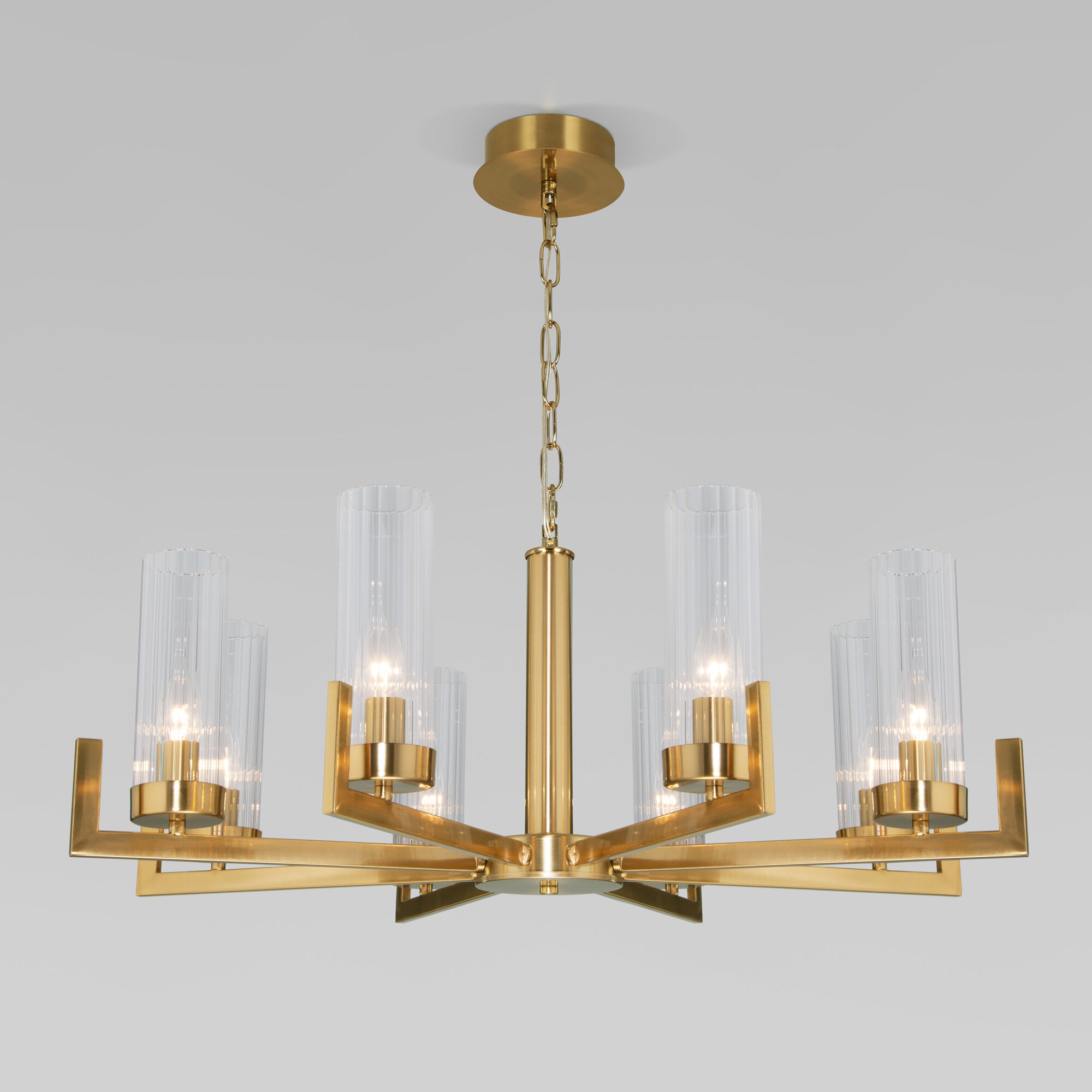 Подвесная люстра в цвете латунь предназначена для создания основного освещения в современных и классических интерьерах, подходит для различных типов помещений: гостиная; спальня и рассчитана на площадь освещения 14 м².