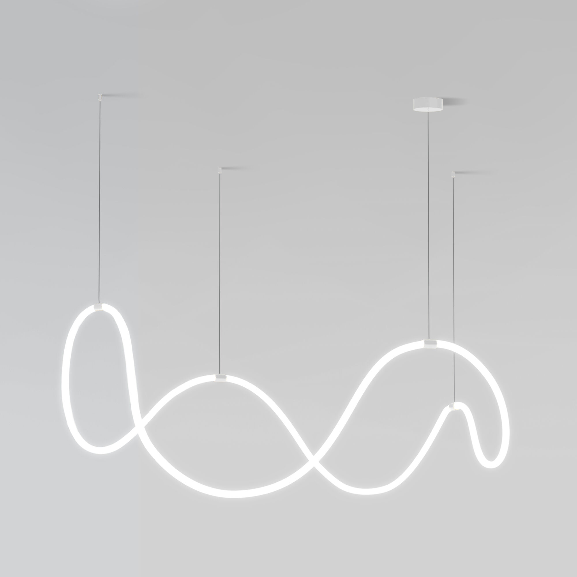 Необычная люстра из гибкого неона Full Light с пультом управления способна в корне изменить привычное восприятие интерьера. Благодаря гибкости неон можно расположить совершенно в разных вариациях. Крепление в белом цвете можно установить в любых точках потолочного пространства и создать необходимую высоту светильника. Световой элемент за счет двойной LED-ленты излучает свет всей своей поверхностью, угол света 360°. С помощью пульта управления можно регулировать яркость и цветовую температуру, доступную в трех значениях: 3300, 4200 и 6500 К.