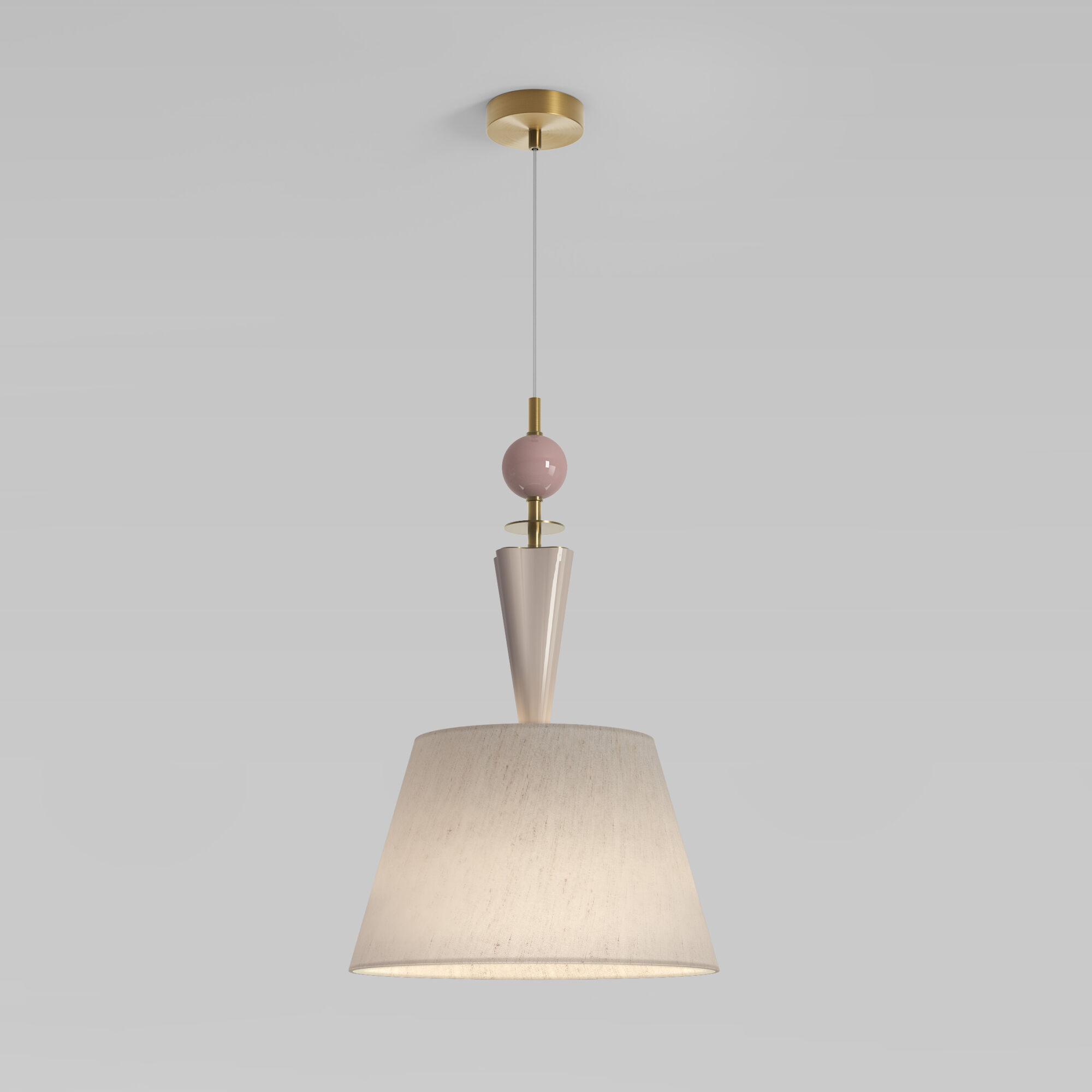 Подвес с тканевым абажуром и изящным керамическим декором — гармония текстуры и формы. Мягкая ткань рассеивает свет, создавая уютную атмосферу, а керамические элементы добавляют утончённый акцент.