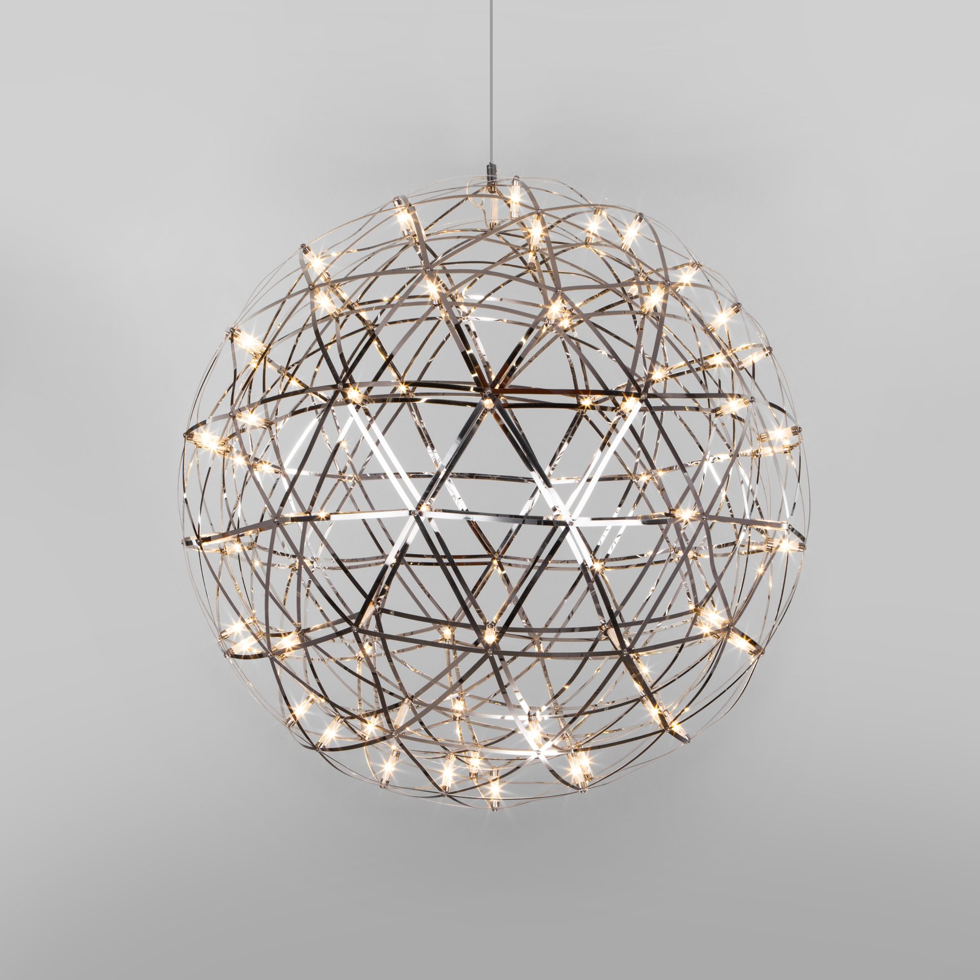 Светильник с металлическим шарообразным плафоном оснащен системой регулировки высоты подвеса, позволяющей размещать изделие на разных уровнях, уменьшая или увеличивая угол рассеивания светового потока. Данный светильник легко устанавливается на потолке при помощи монтажной планки.