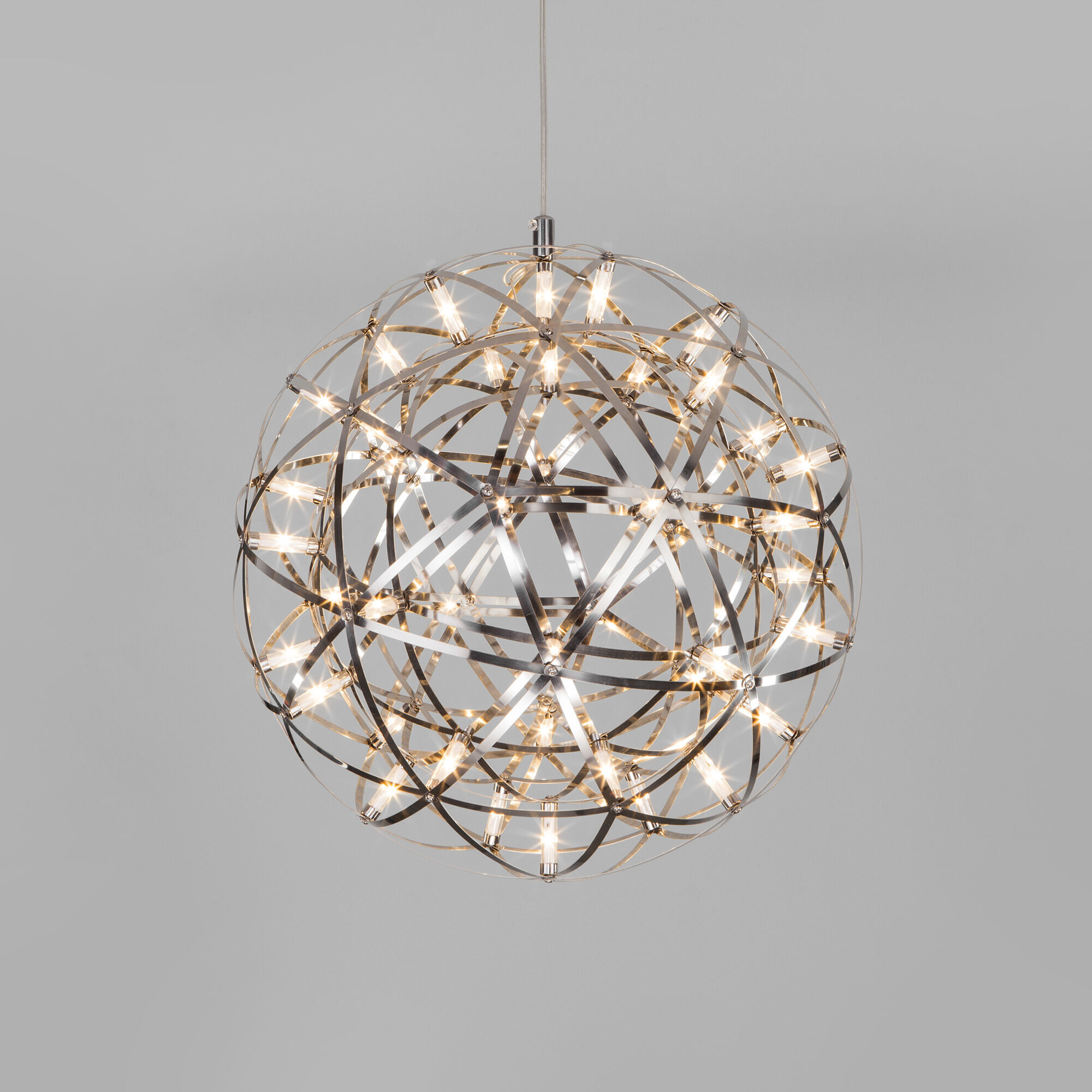 Светильник с металлическим шарообразным плафоном оснащен системой регулировки высоты подвеса, позволяющей размещать изделие на разных уровнях, уменьшая или увеличивая угол рассеивания светового потока. Данный светильник легко устанавливается на потолке при помощи монтажной планки.