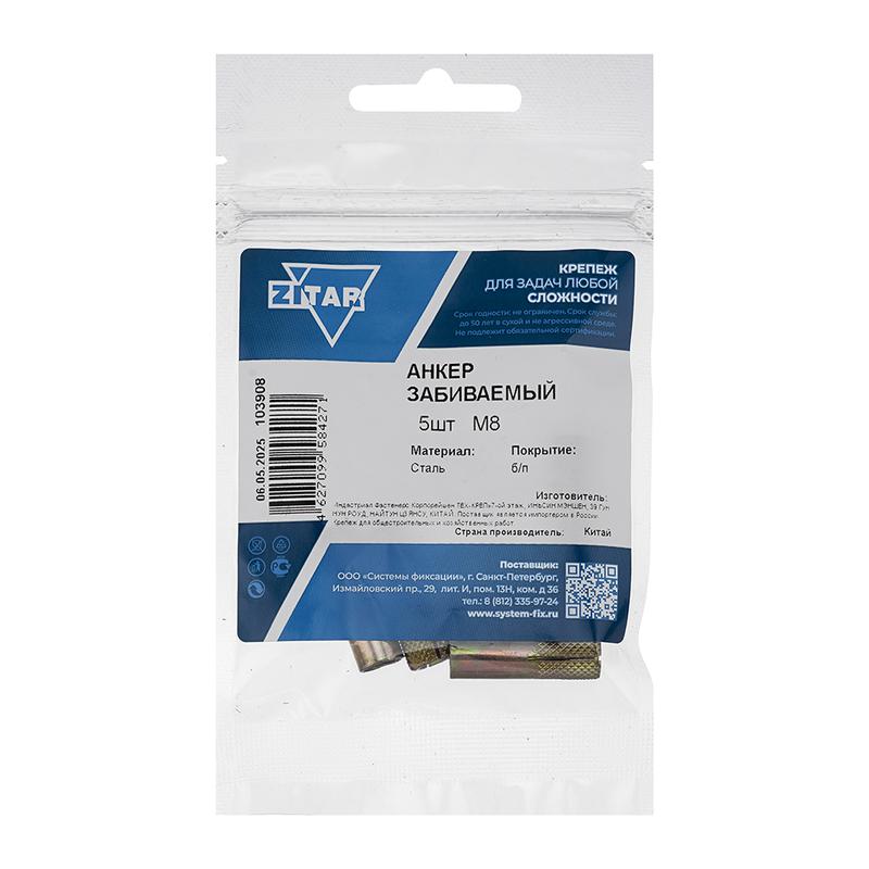Анкер забивной М8 оцинк. (пакет) (уп.5шт) Tech-Krep/Zitar 103908 - условия доставки