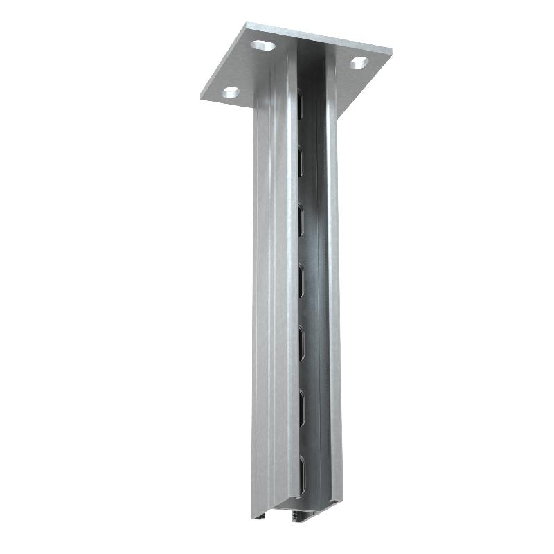 Страт-стойка двойная усиленная используется для потолочного или напольного крепления кабельной трассы. Элемент выполнен из двух сваренных между собой С-образных профилей и опорной пластины с отверстиями для крепежа. Изделие выполнено из стали оцинкованной электрохимическим способом. Предназначено для применения в местах предпочтительно с сухим климатом, внутри помещений и в слабоагрессивных средах, в соответствии с ГОСТ 15150-69. Элемент эффективен и в системе промышленного интегрированного фальшпола. Создавайте комплексные решения для кабельных трасс, ускоряя процесс развития монтажной системы - без применения сварочных работ, при помощи специальных канальных гаек.