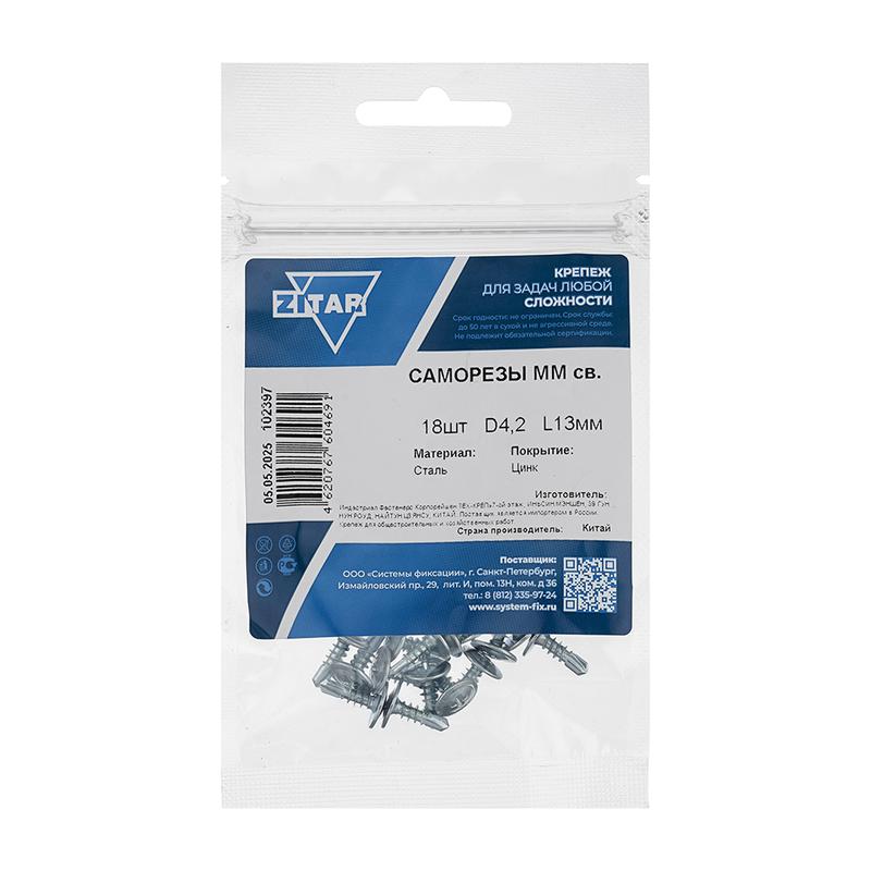 Саморез усиленный для тонкого метал. листа со сверлом 4.2х13 (пакет) (уп.18шт) Zitar 102397 - способы оплаты