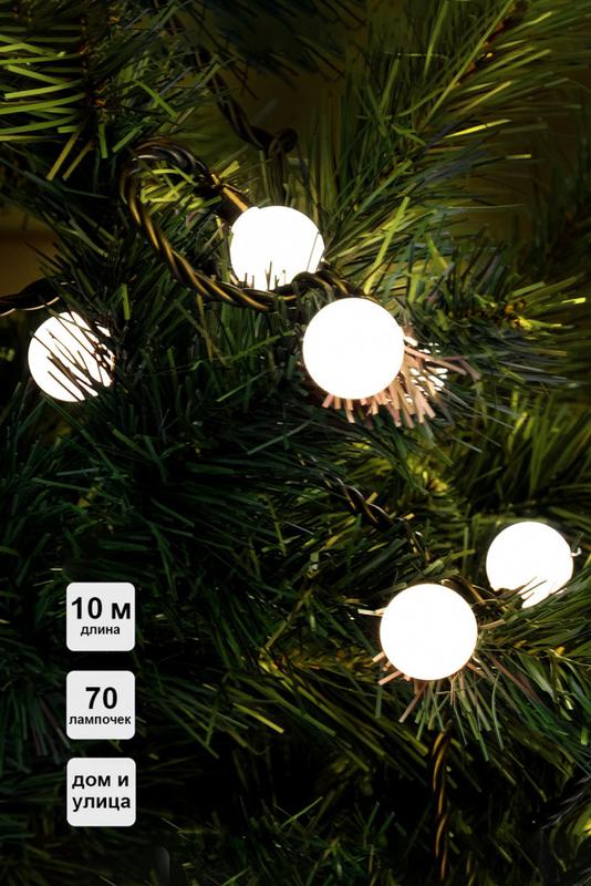 Гирлянда "Шарики" 10м OLDBL070-WW-E 70 тепл. бел. светодиодов соединяемая до 3шт уличная SHLights 4690601049674 - условия доставки