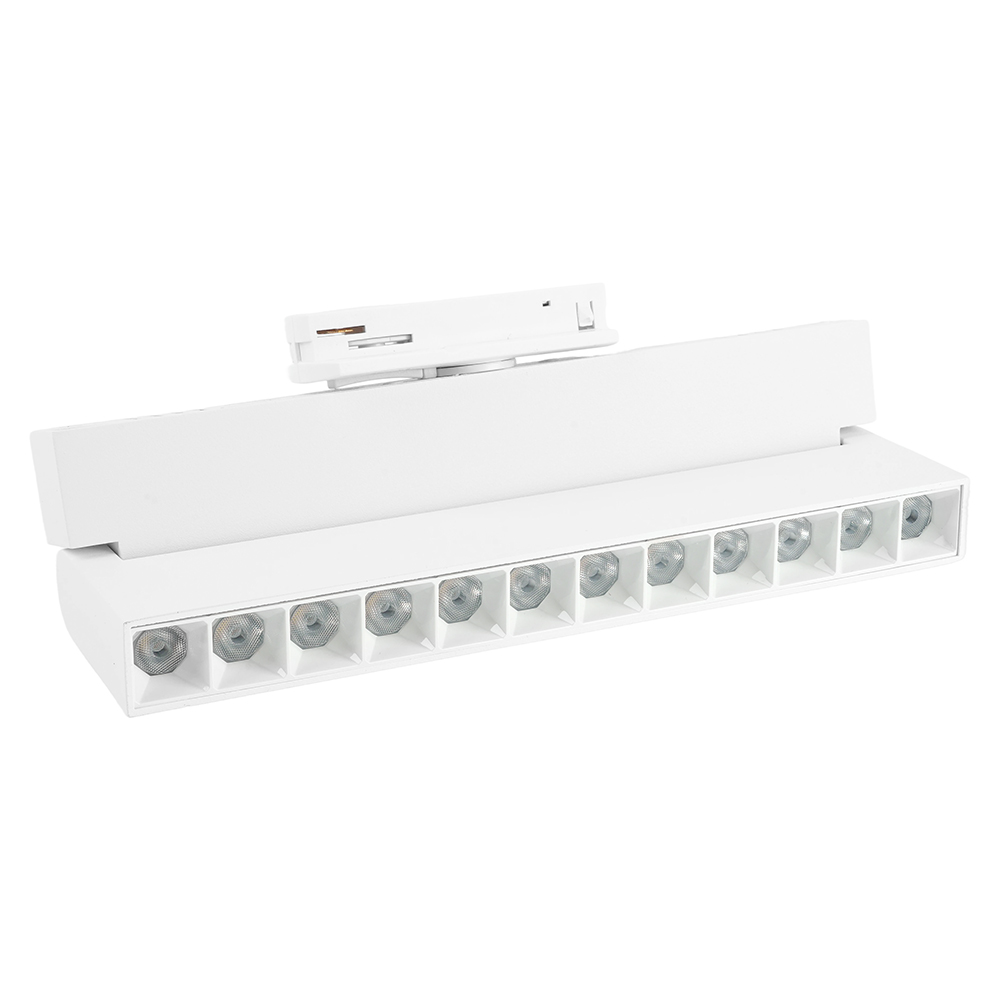 Светильник трековый на шинопровод, - (ДПО) FERON AL139, 12W, 4000К (белый), 170-265V, 1080Lm, цвет белый, корпус алюминий, рассеиватель поликарбонат,/↓90°, 220*22*105 мм
