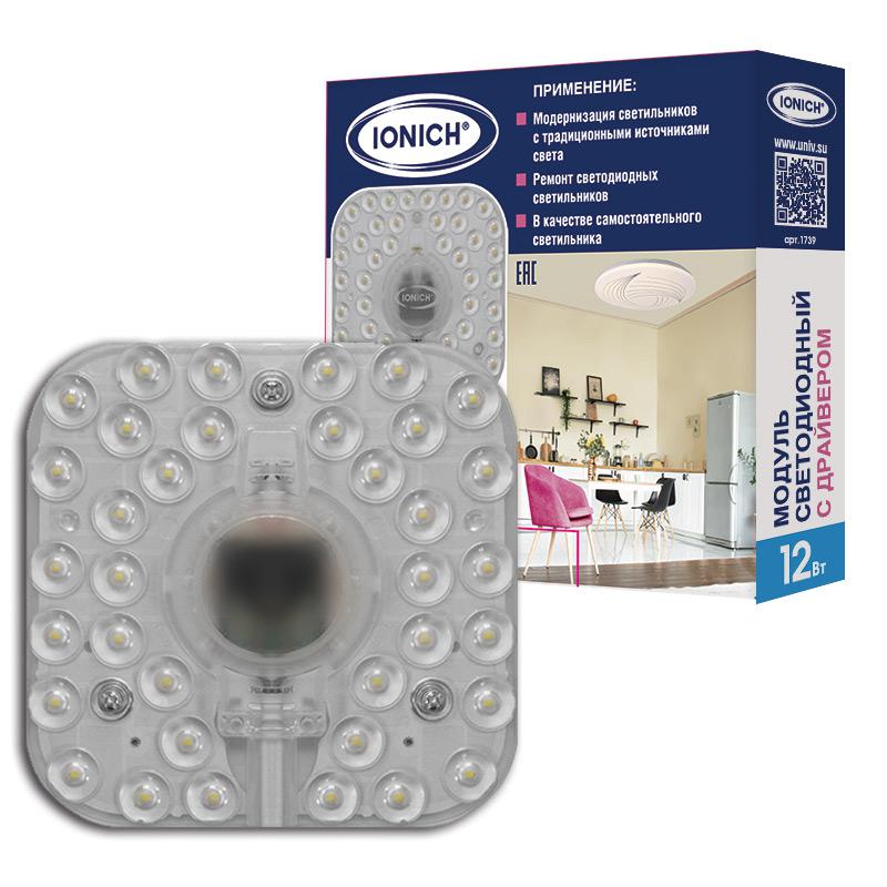 Модуль светодиодный 12Вт 6500К IP20 960лм 230В 98х98мм для декоративных светильников IONICH 1739 - способы оплаты